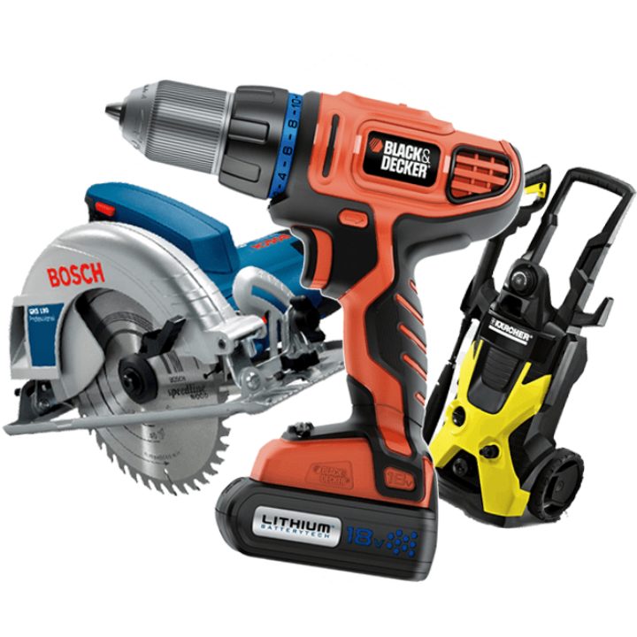 Notre sélection comprend : perceuses, meuleuses, visseuses, clés à chocs, scies, ponceuses, ainsi que